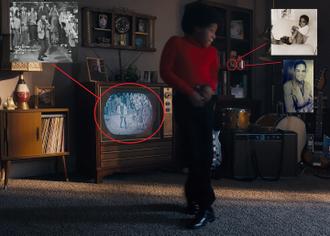 در یکی از صحنههای پایانی تیزر فیلم Michael میتوان به جزئیات کوچکی مانند: در اتاق نشیمن، کمی MJ در حال چرخش، عکسهای خانوادگی واقعی مانند عکس مایکل در کودکی، عکسی از جوزف جوان و در تلویزیون تماشای جیمز براون در حال تماشای اجرای I Got You (I Feel Good) مربوط به سال 1965 را مشاهده کرد.